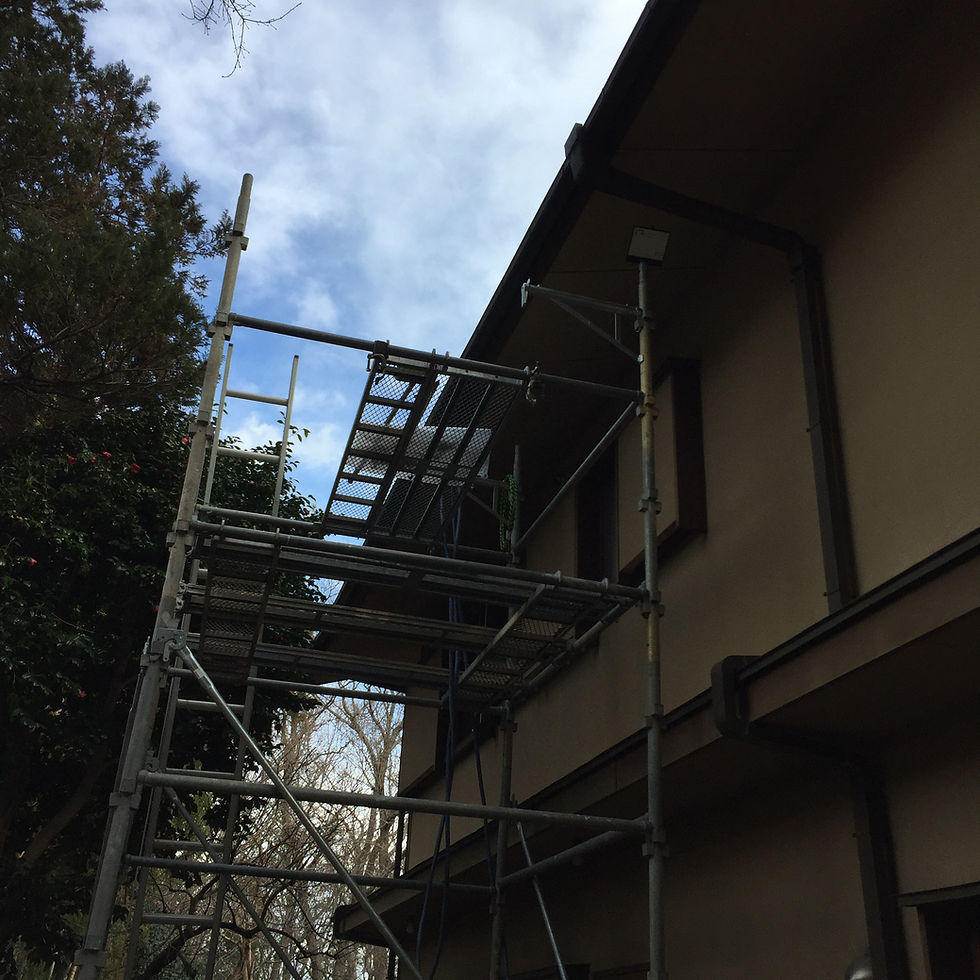 幸い、急所の北側は敷地に余裕があるので足場を組み立てて作業に当たりました。