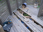 当時のウッドデッキは、あっちもこっちも木が痛んで歩く事が危険のような状態でした。そこを部分的に材料を取り替えて塗装をする工事を行いました。